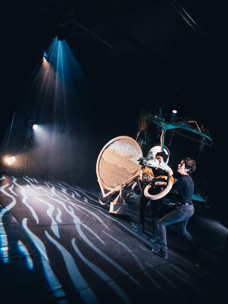 Une tempête dans une ville au bord d’un fleuve. Des enfants à la dérive sur un radeau. Une rencontre entre la vie urbaine et celle du monde sauvage. Sauvage ou les enfants du fleuve est un spectacle à l’univers onirique, porté par trois comédiens et six marionnettes.