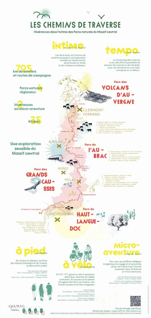 Le Massif central trace entre le Parc des Volcans d’Auvergne et le Parc du Haut-Languedoc un nouvel itinéraire à découvrir à pied et à vélo. Pour le faire connaitre à un public jeune et urbain peu coutumier de ces territoires, les Parcs se dotent d’une communication narrative et visuelle sensible et intimiste.